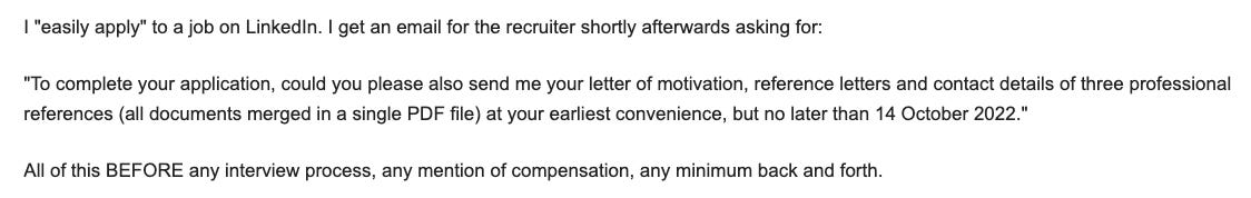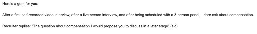 These are emails that were sent to me yesterday in response to my post about the challenges of creating a consistent hiring process. They are from real candidates who are actively interviewing.